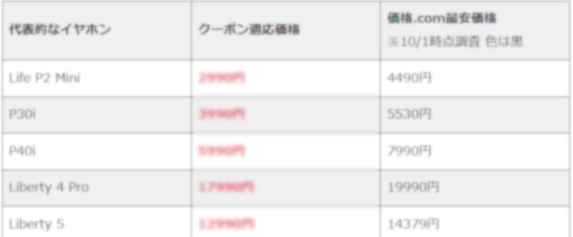 代表的なイヤホンクーポン適応価格価格.com最安価格